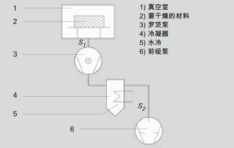 在干燥工藝中,在大氣壓力下,蒸汽總是可以被具有足夠水 蒸氣能力的真空泵移動,然后凝結(jié)在那里。然而,該工藝具有以下缺點: