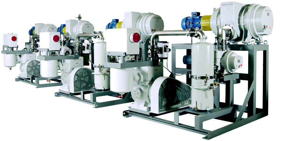 在很多真空工藝(干燥、蒸餾)中,會釋放出大量的蒸汽,這些氣體必須要被抽出。此外,大量的泄漏空氣會滲透到大型容器中,而且那些正在蒸發(fā)或已干燥的物質(zhì)將釋放額外的空氣,這些空氣之前往往存在于孔隙中或溶解在液體里。